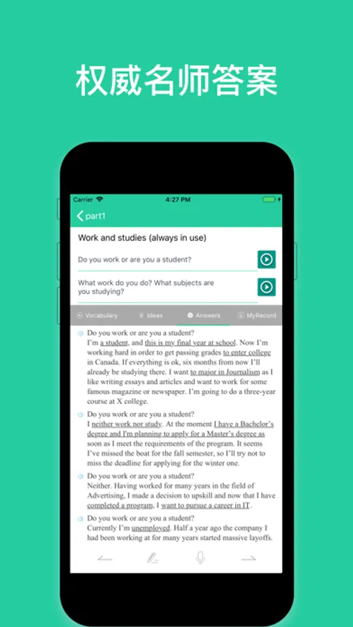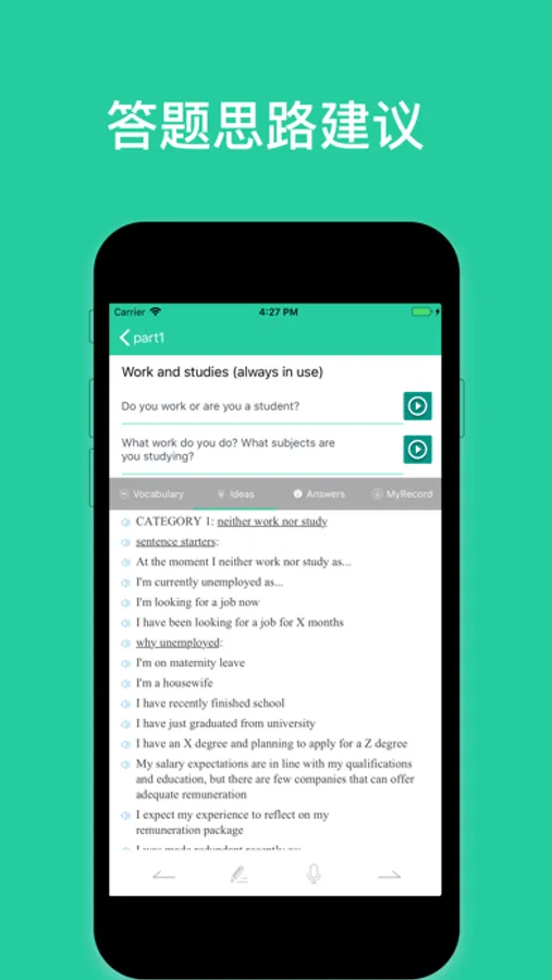 所有题目都配备了海外考雅业界权威编写的原创雅思口语高分范文,结合独家解题思路,便于烤鸭就地取材,轻巧加工,为你所用。