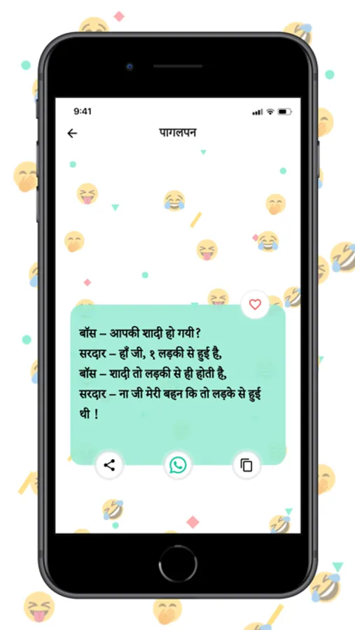 Completely Offline & FREE collection of Hindi Funny SMS and Jokes. This is a fresh arrival on market to provide best quality. Our aim though this app is to provide Fun and Humor into your life. Our aim is to make our visitors relaxed and happy & provide them a necessary break.