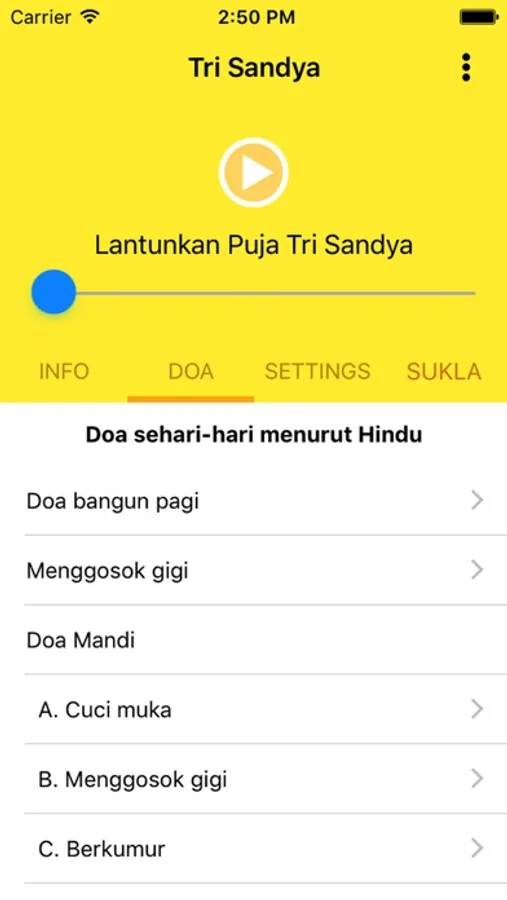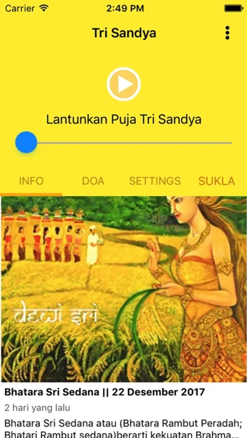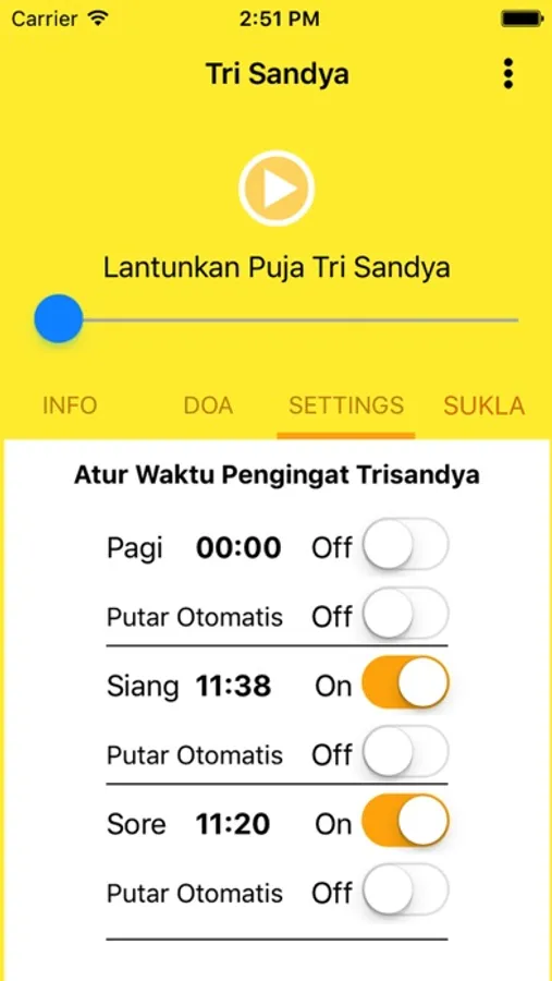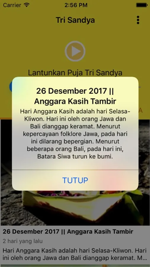 Aplikasi pengingat Trisandya (sembahyang 3 waktu). Gunakan smartphone untuk menemani anda berdoa tepat waktu. Membuat kita selalu terhubung 3x sehari dengan energi murni Tuhan dan terhindar dari derita duniawi. Selalu langkahkan kaki kita dalam bimbingan Tuhan dengan Trisandya... semoga bermanfaat.