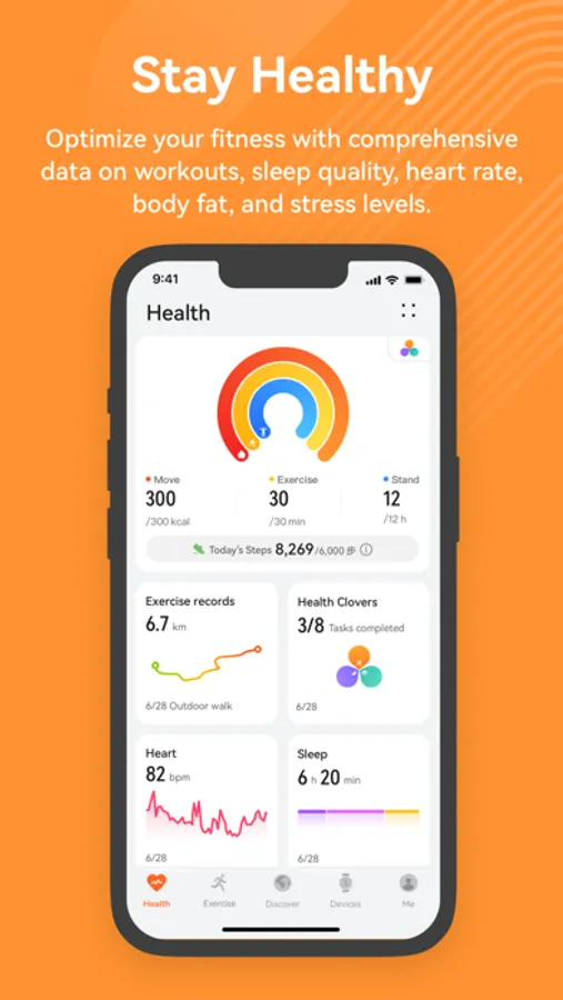 See your life in amazing detail with Huawei Health stats. The app keeps records of your heart rate, weight, sleep quality, step count and more. All your data is shown in clear, dynamic graphs so you have a better understanding of your health in a more accessible way.