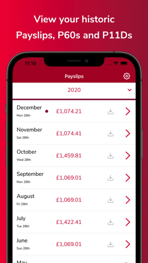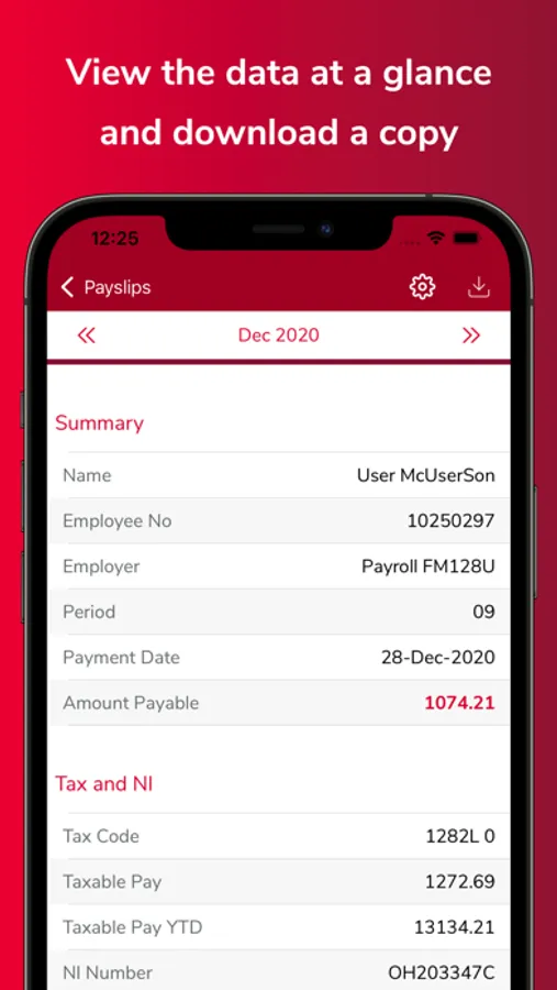 • View current and historic payslips: The mobile application displays all current and historic payslip data that is available in the web application;