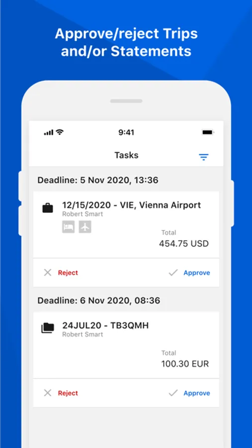 • Do you need to bridge time at the airport? Check your tasks and approve trip requests or expense statements while waiting for boarding.