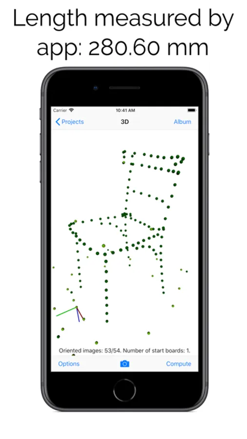 The Linearis3D Photogrammetry App enables you to make precise 3D measurements with your iOS device's camera. The app automatically computes 3D point coordinates from 2D images of an object. Measurement errors smaller than 1mm can be achieved in a best case scenario.