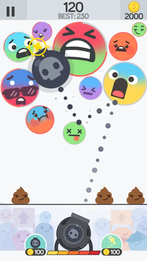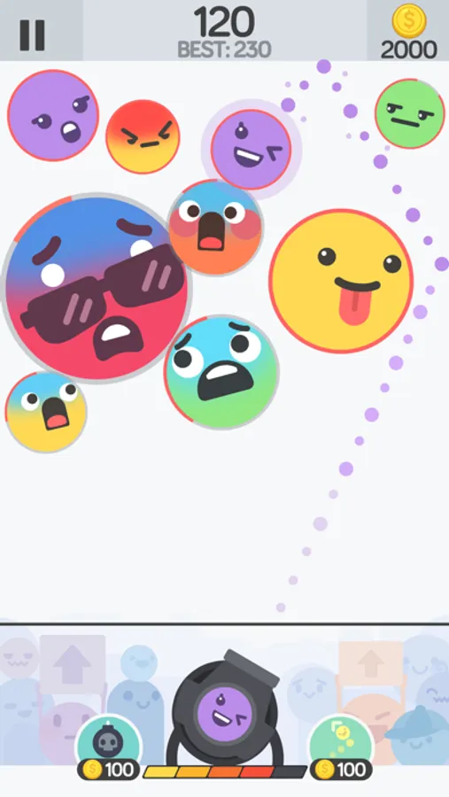Simple to get on the way: Easy power adjustment, direction controlling and targeting at different balls! The more Emoji balls you crushed, the higher score you got! Warning!!! Do not touch the launching line!