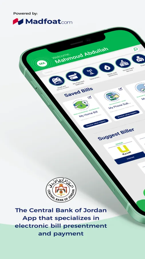 eFAWATEERcom is an electronic, real-time bill presentment and payment service owned by the Central Bank of Jordan. The eFAWATEERcom mobile application allows you to inquire, pay and manage your bills easily and securely from your mobile phone.