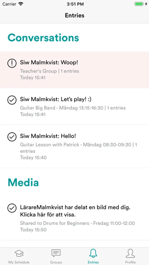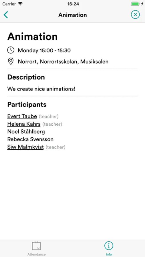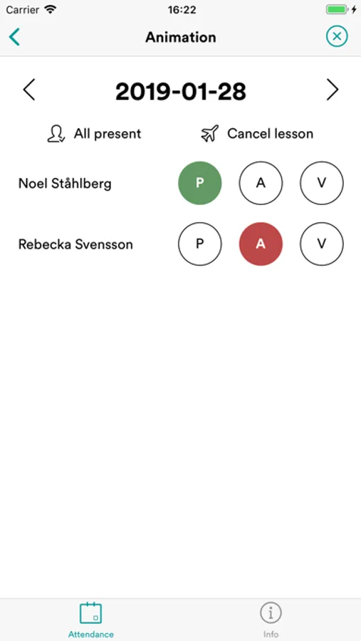 If you're a teacher, you can add attendance directly in the app. You can also cancel a lesson.