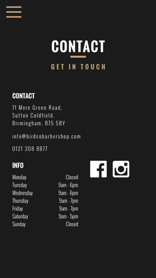 The app provides links to all our social media, allowing you to view out latest work & offers through Instagram & Facebook.