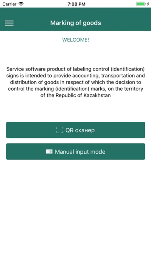 Service software product of labeling control (identification) signs is intended to provide accounting, transportation and distribution of goods in respect of which the decision to control the marking (identification) marks, on the territory of the Republic of Kazakhstan