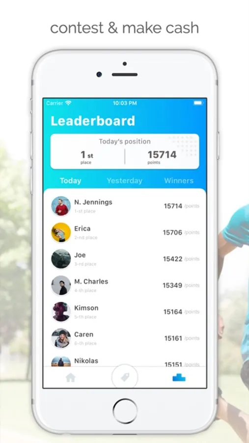 1. Walk. Every day our system will select 50 random users within yesterday's top 500 and they will get $1 each.