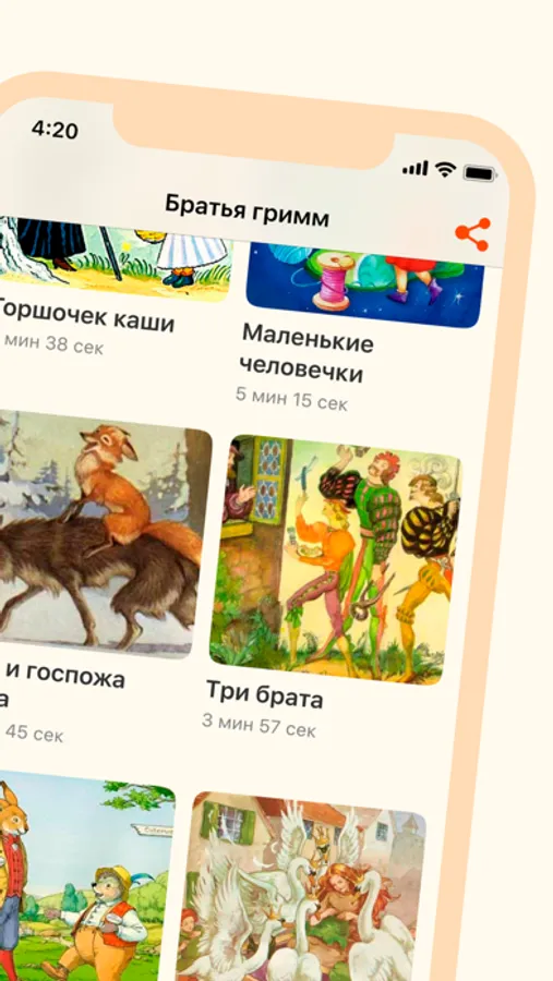 Библиотека приложения постоянно пополняется новыми сюжетами, которые подходят для самых маленьких слушателей, дошколят или школьников. Познавательные, красивые сказки, которые давно стали классикой — в удобном формате для вашего ребёнка!
