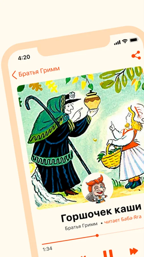 Приложение «Сказки от Бабы Яги» это волшебный сборник интересных детских сказок озвученных профессиональными дикторами и любимой Бабушкой Ягой.