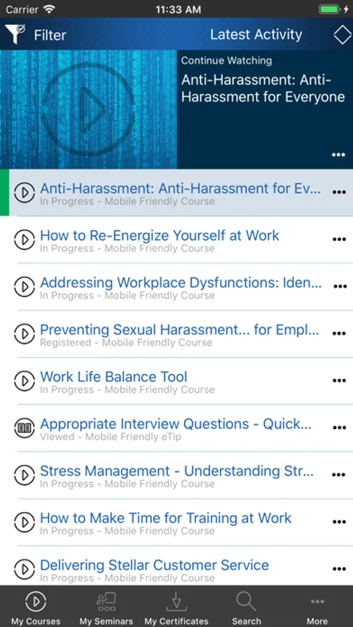 • Pick up online training where you left off—even if your last log in was from a PC.