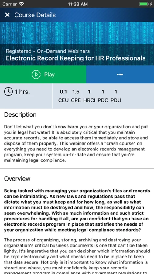 • Professional certification and course credits available (CEU, CPE, HRCI, OSHA, PDC, PDU and SHRM) as per course description.