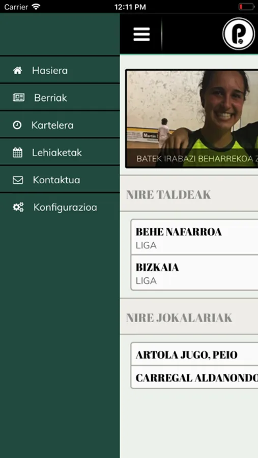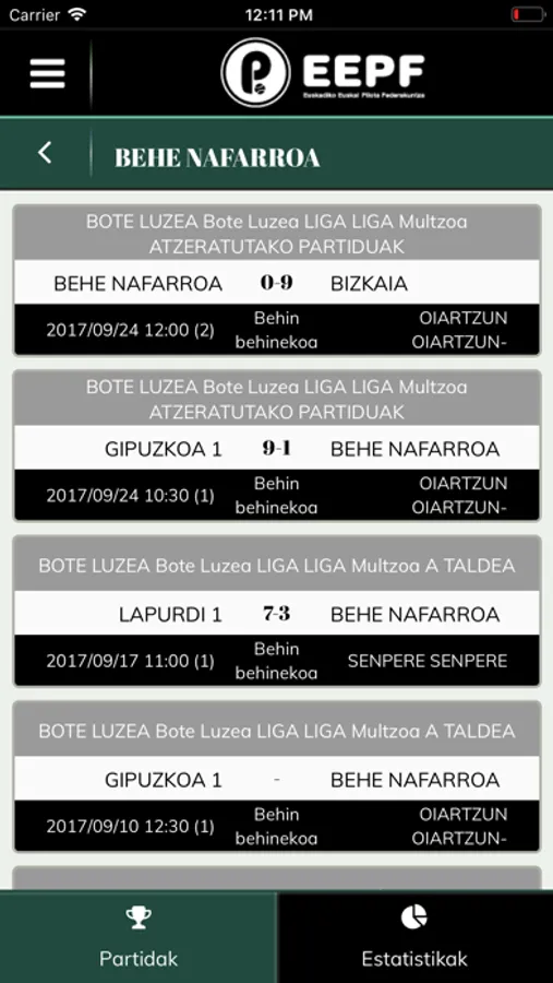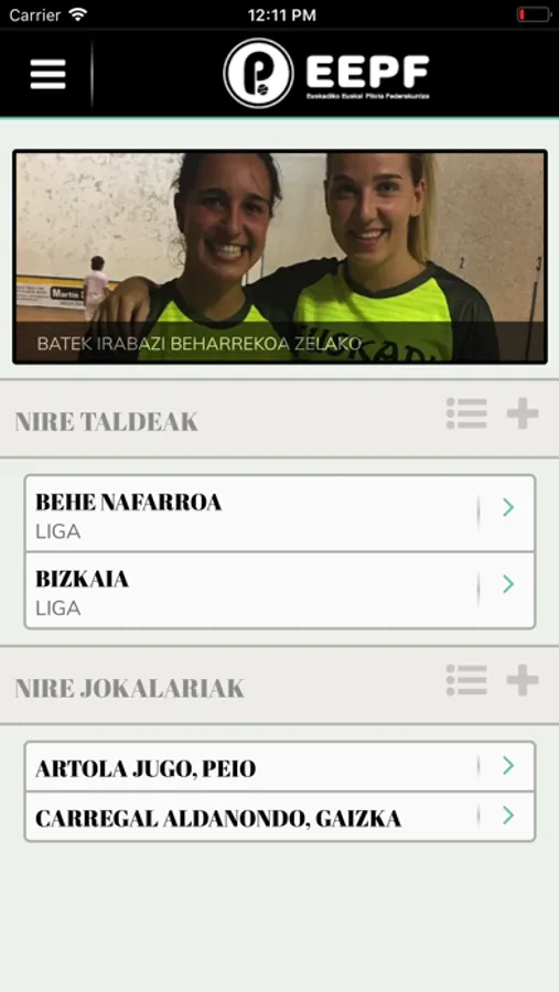 App oficial de la Federación Vasca de Pelota.