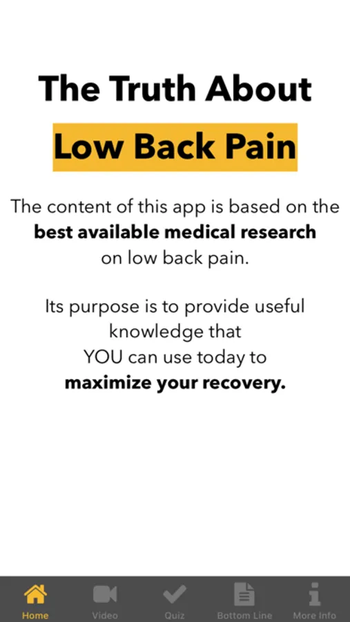 The Truth About Low Back Pain is an interactive app developed by researchers within the US Department of Defense to help better inform patients about appropriate management of low back pain.