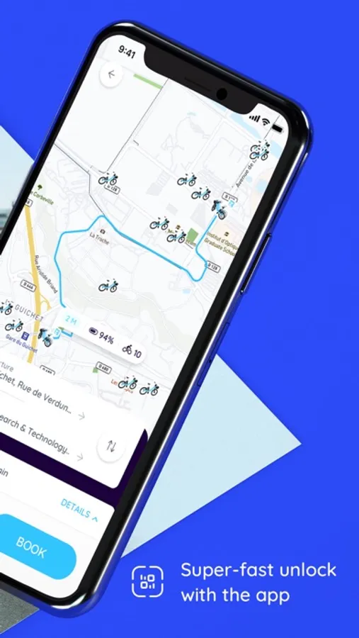 Open the app to find an electric bike nearby. Book your electric bike or unlock it straight away by scanning the QR code. Whoosh, you’re already gone.