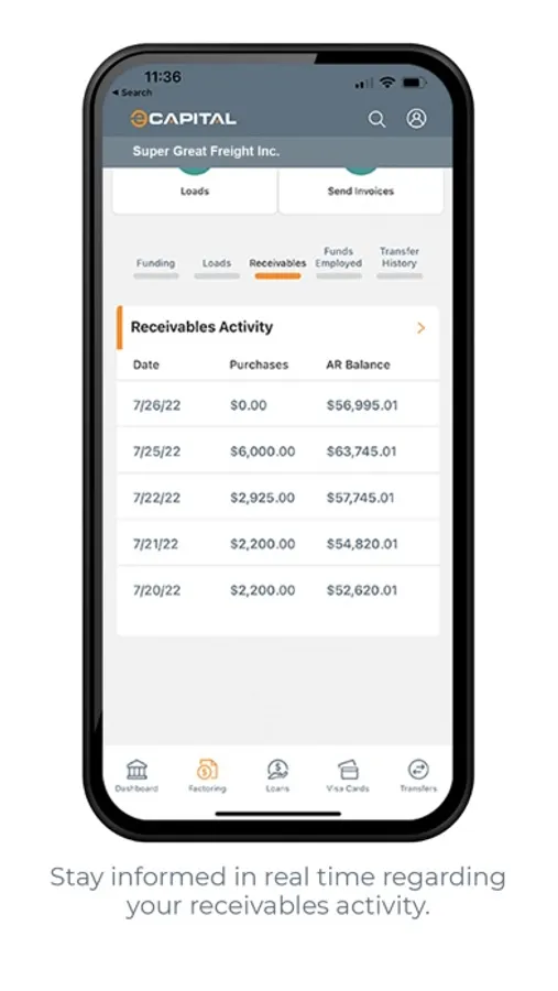 The eCapital Mobile App keeps up with the speed of your business, allowing you to track and manage your loads, and submit for funding while on the go.