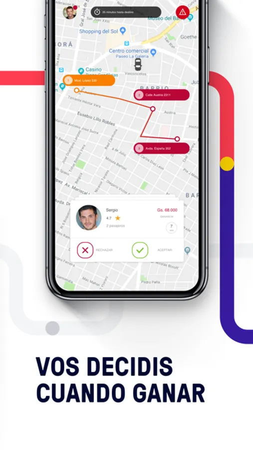 Con MUV, conoces tu ganancia y todo el trayecto antes de aceptar un pedido, te podes activar cuando desees y ganar de manera transparente con comisiones fijas y transparentes.