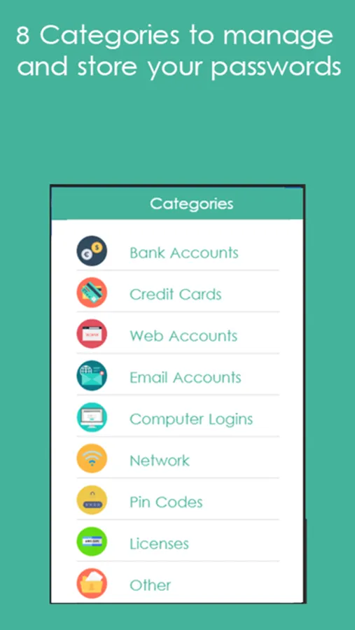 8 Categories will help you manage and store your passwords and data.