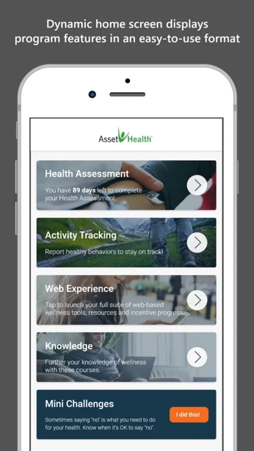 HEALTH ASSESSMENT: Take your Health Assessment while on the go in a very linear, streamlined mobile format.