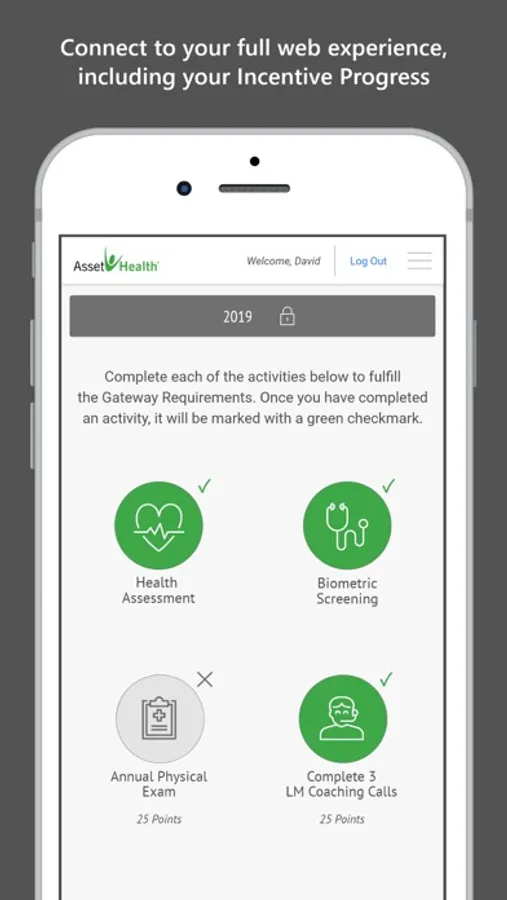 Launch your full web-based wellness portal and view your incentive progress, directly from within the app, without signing in.