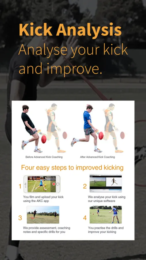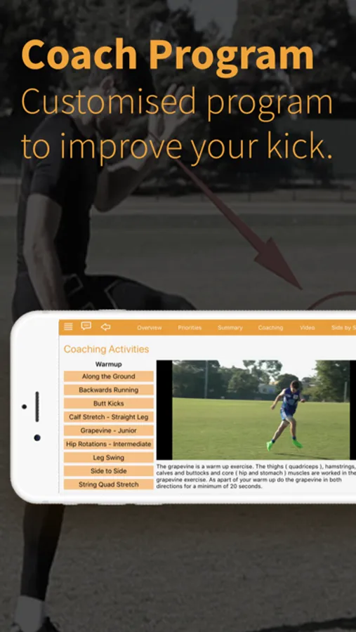 A customised coaching program is designed to develop your kick. The program focuses on improving kicking technique and muscle strength. Education videos are also provided to advance kicking knowledge.