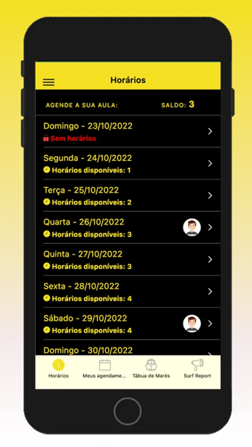 - Agendar antecipadamente as aulas de surfe de seus alunos;
