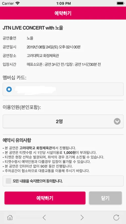 멤버십 카드 없이 앱 내 바코드생성을 통해 JTN 라이브 콘서트 관람이 가능합니다.