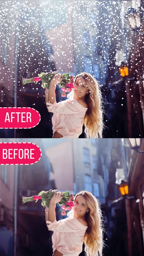 Snow Effect Photo Editor gives your photos many fantastic effects that makes your photos unique and with an amazing style!