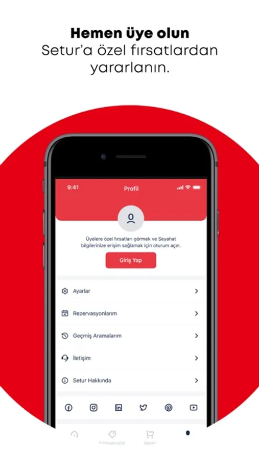 Tatilinizi hemen planlamaya başlamak için tek yapmanız gerek Setur seyahat uygulamasını mobil cihazınıza indirmek! Size özel sunulan önerilerle kusursuz bir kullanıcı deneyimi yaşamanız mümkün. Pratik, kullanıcı dostu ve ücretsiz olan Setur tatil uygulaması, sunduğu ayrıcalıklar ile eksiksiz bir tatil planı için ihtiyaç duyduğunuz tüm imkanları sağlar.