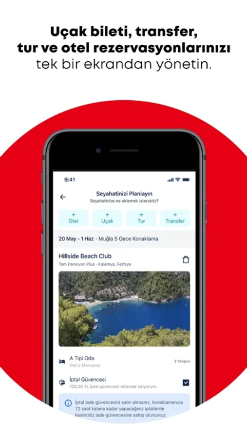- Tatil planınızın otel, uçak, yurt içi ve yurt dışı tur ve transfer adımlarını uygulama üzerinden gerçekleştirebilirsiniz.