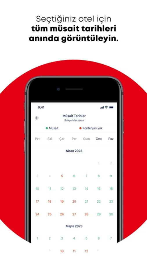 - Seçilen oteller ve turlar için müsait tarihler görüntülenebilir.