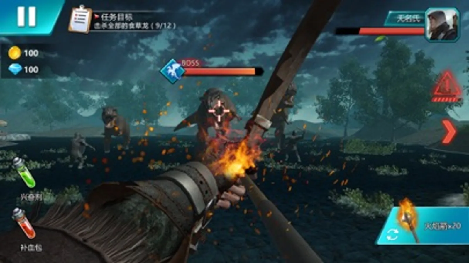 Take on the mighty T-Rex, escape the slashing claws of the velociraptor, and strategically switch your arrows to hunt those dinosaurs down as a skillful archer.