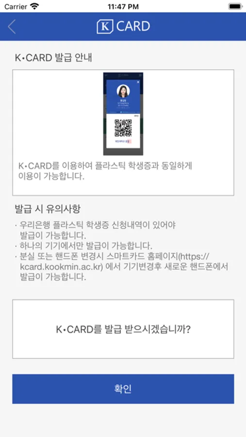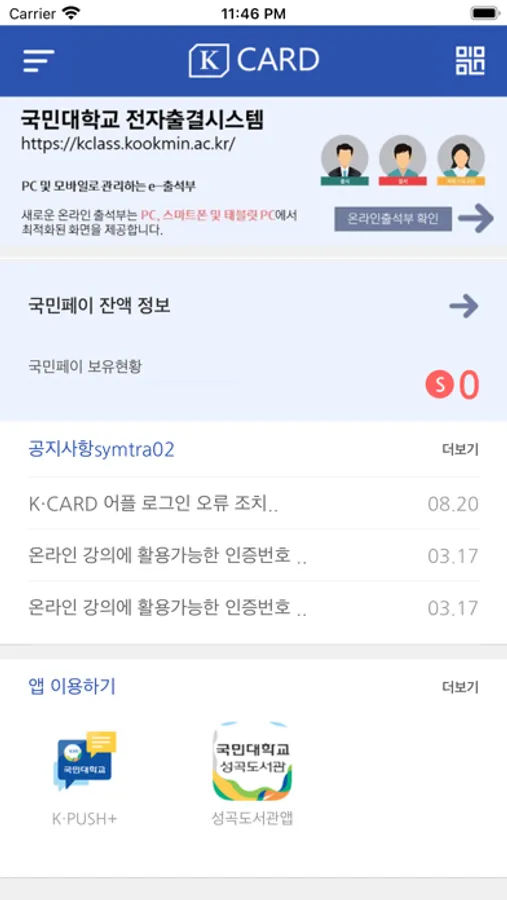 국민대학교 학내 구성원(학부생, 대학원생, 교직원)을 대상으로 서비스하는 공식 모바일학생증/신분증 앱입니다.