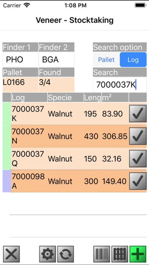 This App is for the offline stocktaking of Veneer. The App synchronises with your TIMBERplus system to retrieve stock data. Search logs, pallets or bundles by scan which automatically selects the scanned data as found, or search logs by manual input. Once completed synchronise with your TIMBERplus system to send the stocktaking data.