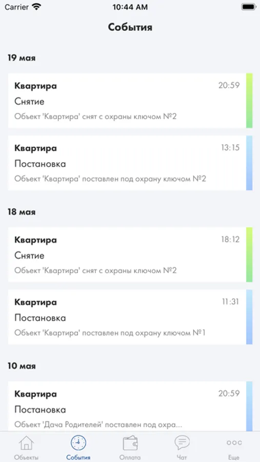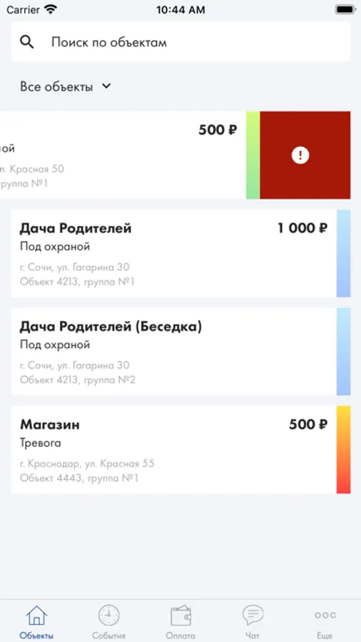 - Получать уведомление об изменении статуса на охраняемых объектах