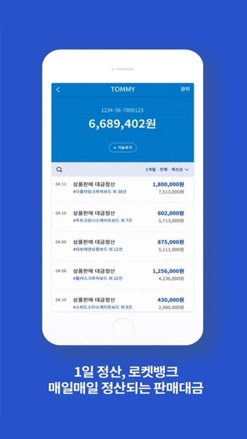 셀러가 판매대금의 출금을 바로 신청할 수 있어요.