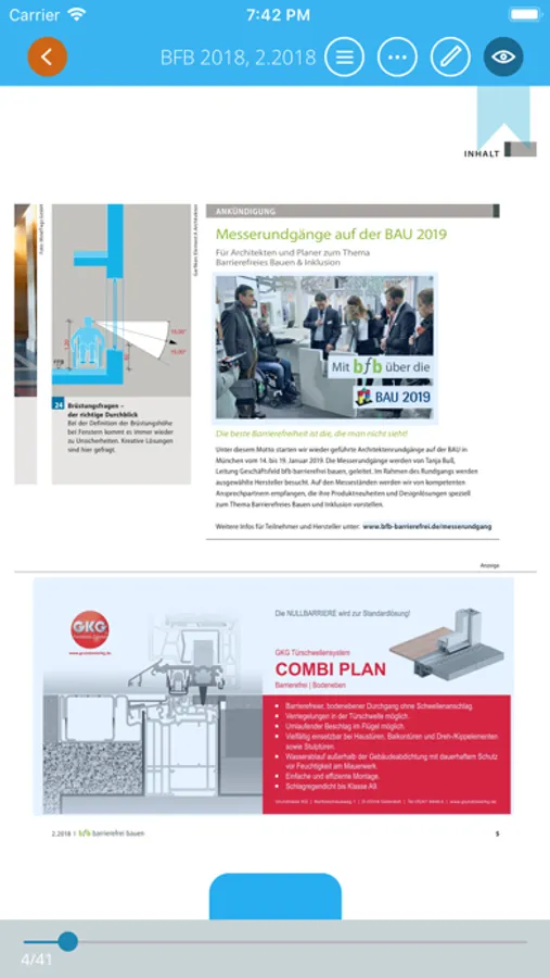 This is your application for specialized publications with added value. Get easily accustomed to the electronic table of contents and the fast and intelligent search in all publications. The work desk function helps you search within an entire publication. Add bookmarks and your own annotations in any desired passage, in the form of texts, images, photos or audio comments. This app offers thus a valuable library of online publications with high performance additional features – all this in an attractive design.