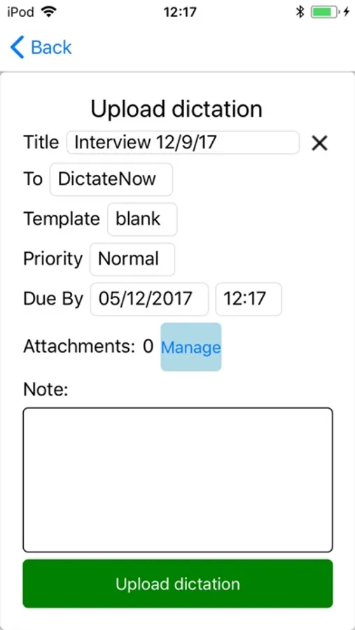 To send work to our team you must be registered with DictateNow. Contact support@dictatenow.com for more information.