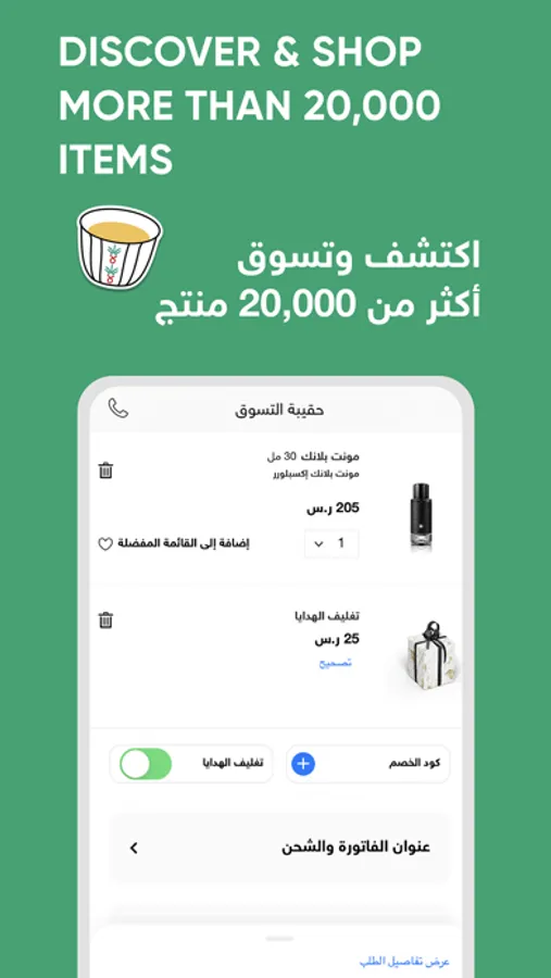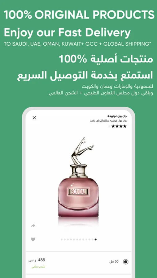 • Shopping from KSA, UAE, Kuwait, Oman and Global stores.