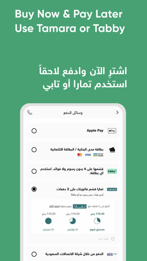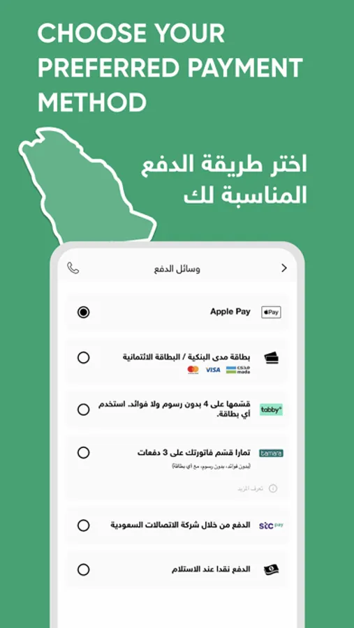 • Choosing a suitable payment method: Apple Pay, STC, Cash on Delivery & Credit Card.