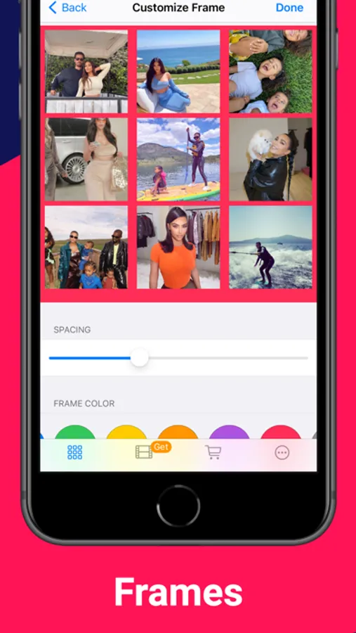 - Set frame color, spacing, and shape.