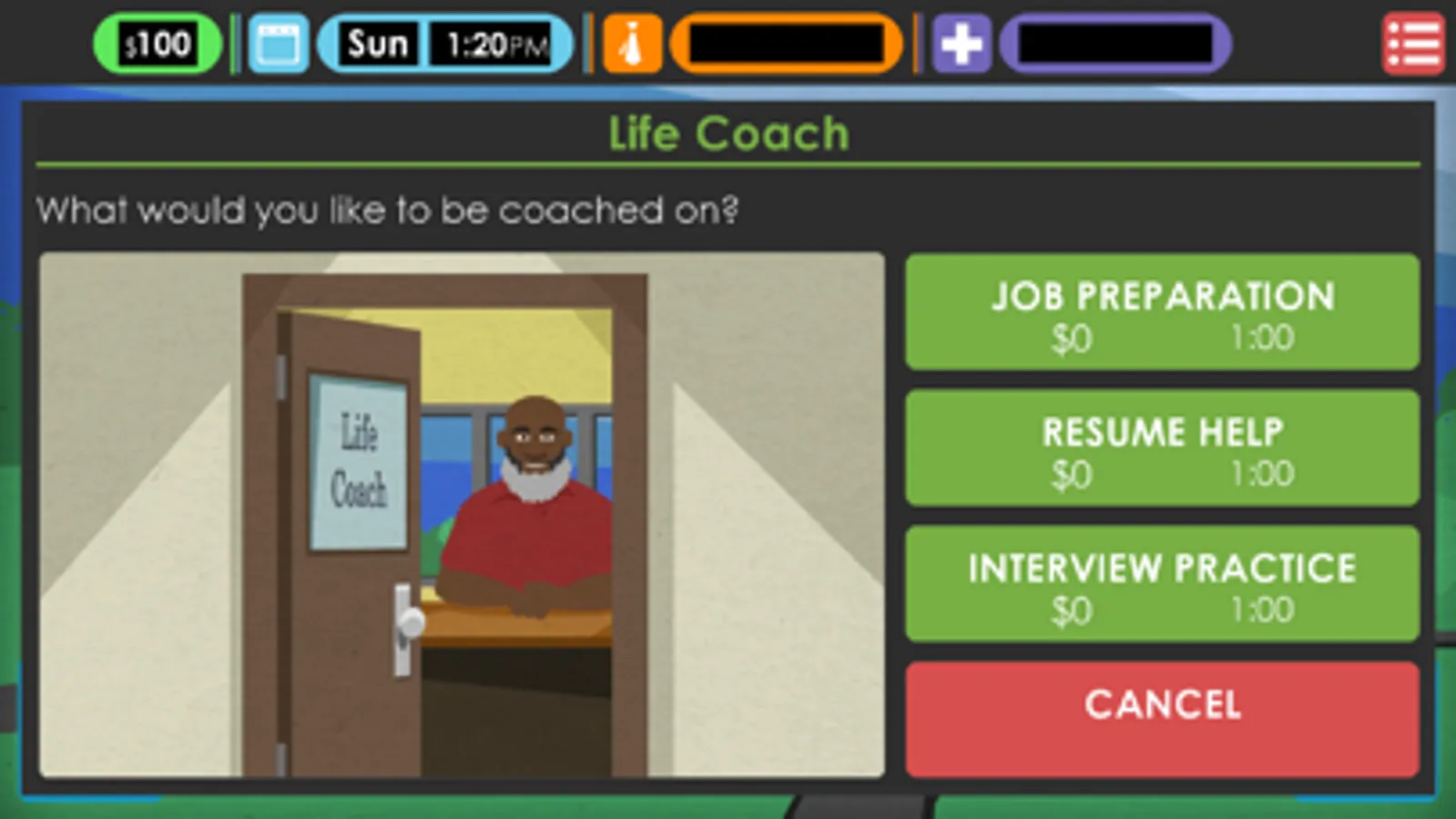 You’ve got the job, now comes the hard part: balancing all of life’s competing demands. JobPro: My Life is about YOUR LIFE, where you must make decisions around your work, health, and social life to try and stay on top of it all. Spend a week choosing what to eat, who to hang out with, how to spend your money, and where to spend your time. Practice general life skills in JobPro: My Life and see if you can maintain your professionalism and well-being throughout the week.