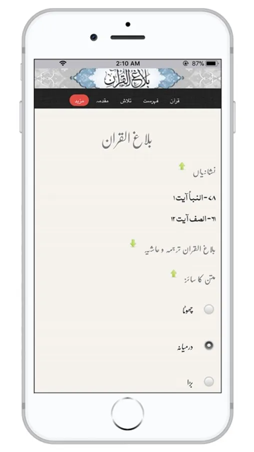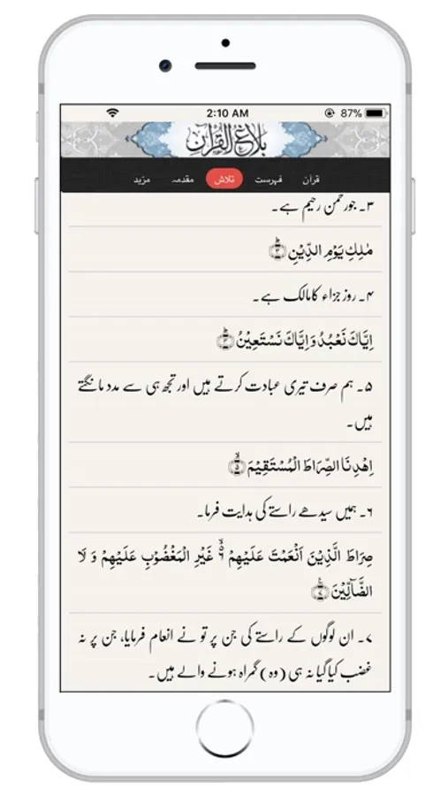 - Urdu translation (Allama Mohsin Ali Najafi)