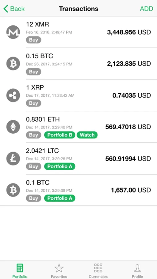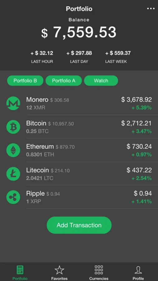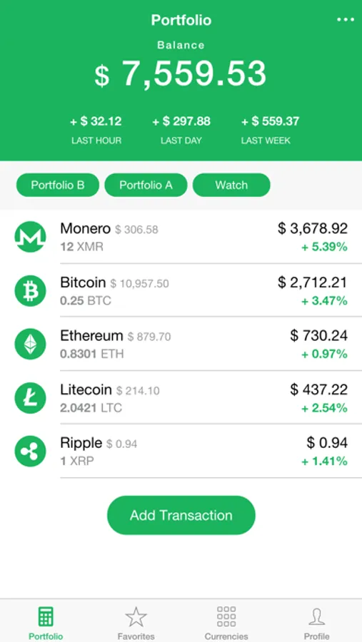 - Advanced Portfolio: Track your transaction history, investments and profits for each currency in your portfolio.