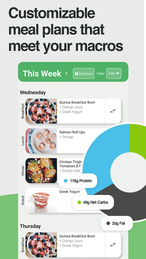 • Built around your calorie and macro needs (protein, fat, carbs)