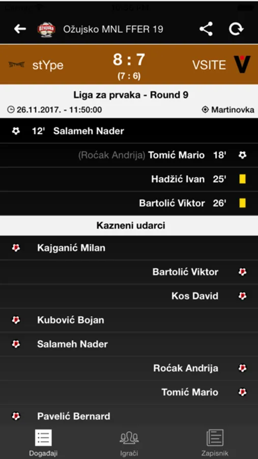 - Statistike - pregled najvažnijih statističkih podataka (strijelci, asistenti, itd.)