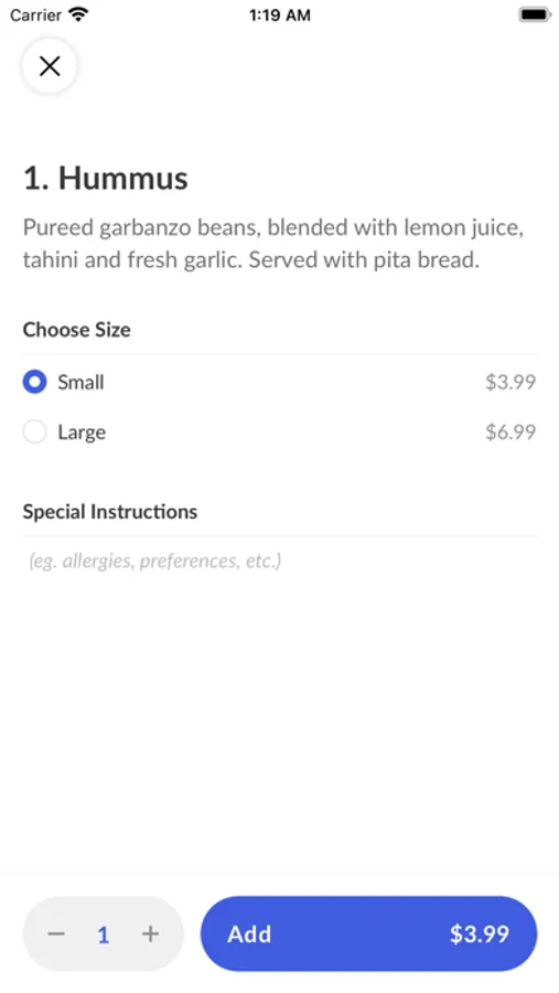 With the Pita Cafe Carryout mobile app, ordering food has never been easier. Whether you're looking for a quick snack or a full meal, we've got you covered. Just browse our easy-to-use menu, customize it how you'd like, place your order using our secure payment system, and sit back! A push notification will alert you when your order will be ready.