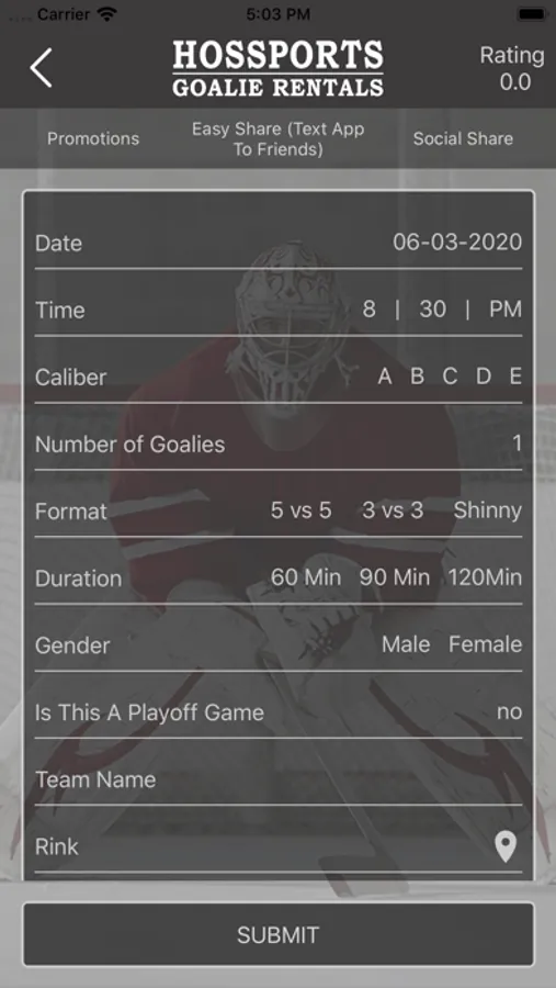 Hossports Goalie Rentals offers a full range of Hockey Rent A Goalies, who are always on-time and reliable. The new app streamlines the rental process where the customer selects their next netminder. Male and Female goalies are available for shinny, league games and tournaments. We also support promotional and commercial events.