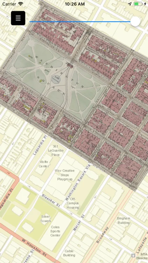 You can overlay maps and fade between them, which is especially useful when looking at historic maps. You can plot your GPS location, which is always useful when traveling.